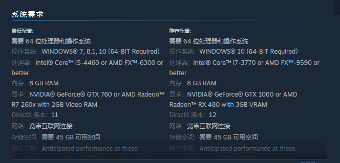 游戏内容介绍之前,给大家先说下游戏的官方配置要求。作为一款重置版的大型单机游戏,《生化危机3重置版》对PC主机的硬件配置要求也是较高的。